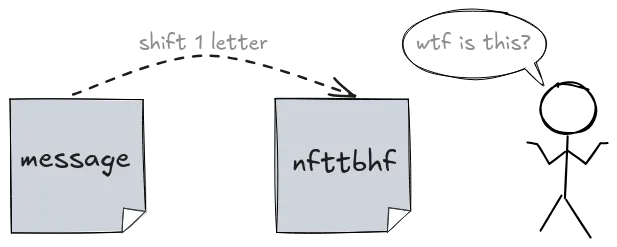 But there was a catch. Patterns - such as the repeated letter 't' in the message above - can still give attackers clues. And given enough time, they could try all possible shifts and eventually break the code.