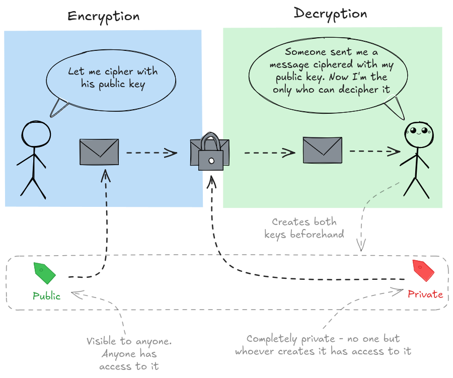 This leap made modern cryptography possible: secure websites (HTTPS), encrypted emails, digital signatures… the entire internet depends on this idea that I know something you don't, and that secret stays mine. It may seem like the holy grail of encryption has been reached - only you hold the secret key, and your ciphertexts cannot be deciphered unless you reveal it.